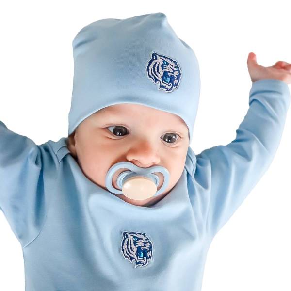 Čepička s jemnou výšivkou tygřího loga. Vyrobena z biobavlny v ČR. Šetrná k dětské pokožce. Prát na 30° a nesušit v sušičce. Velikost odpovídá měsícům.